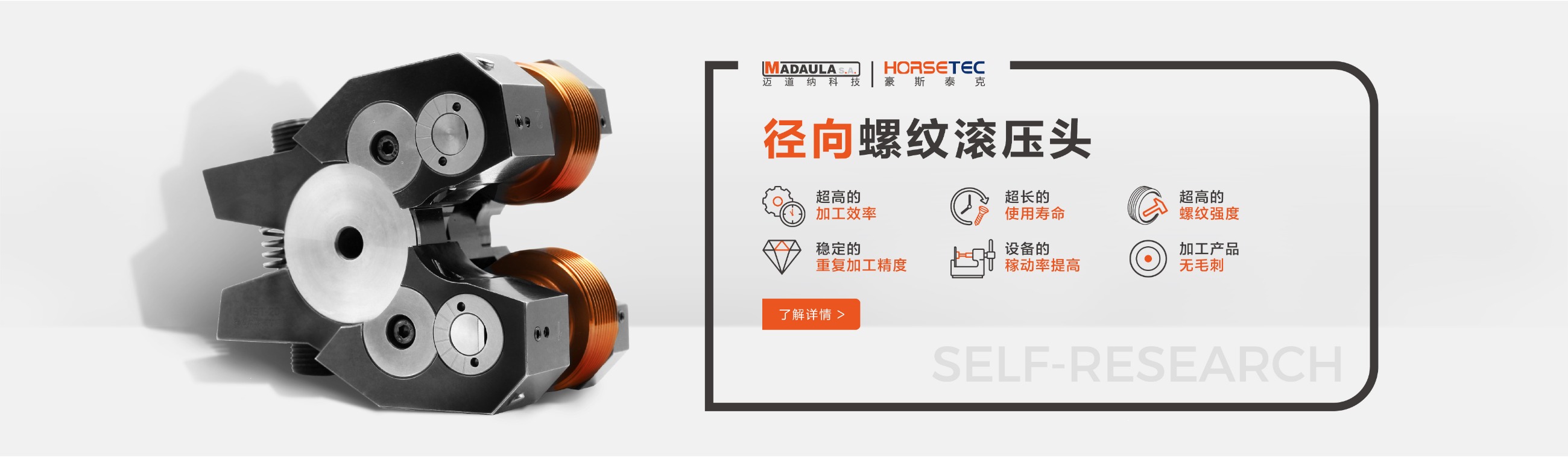 很多做機械的對螺紋滾壓頭都不陌生,它的功能和優(yōu)勢也是有口皆碑的,所以現(xiàn)在有越來越多的人愿意選擇HORSETEC螺紋滾壓工具來滾壓螺紋,而我們常見到的螺紋滾壓工具是采用鋼材料制作而成的一種滾螺紋加工工具,成功沿襲傳統(tǒng)的螺紋滾壓頭的所有優(yōu)勢,比如高效率、高精度、高強度,除此之外,螺紋滾壓頭可以定制您的專屬logo,不僅有效提升了產(chǎn)品的檔次,給使用者帶來不錯利益。今天要給大家說一說高質(zhì)量的螺紋滾2022-09-13